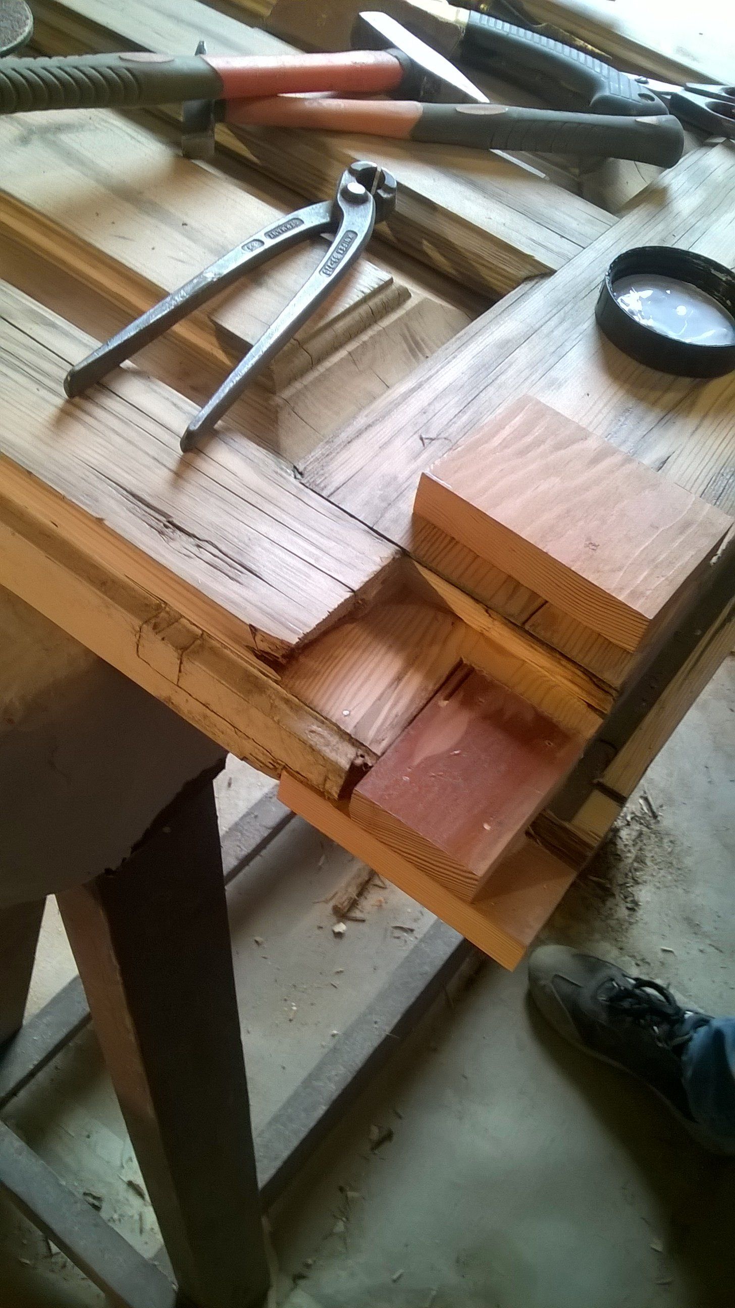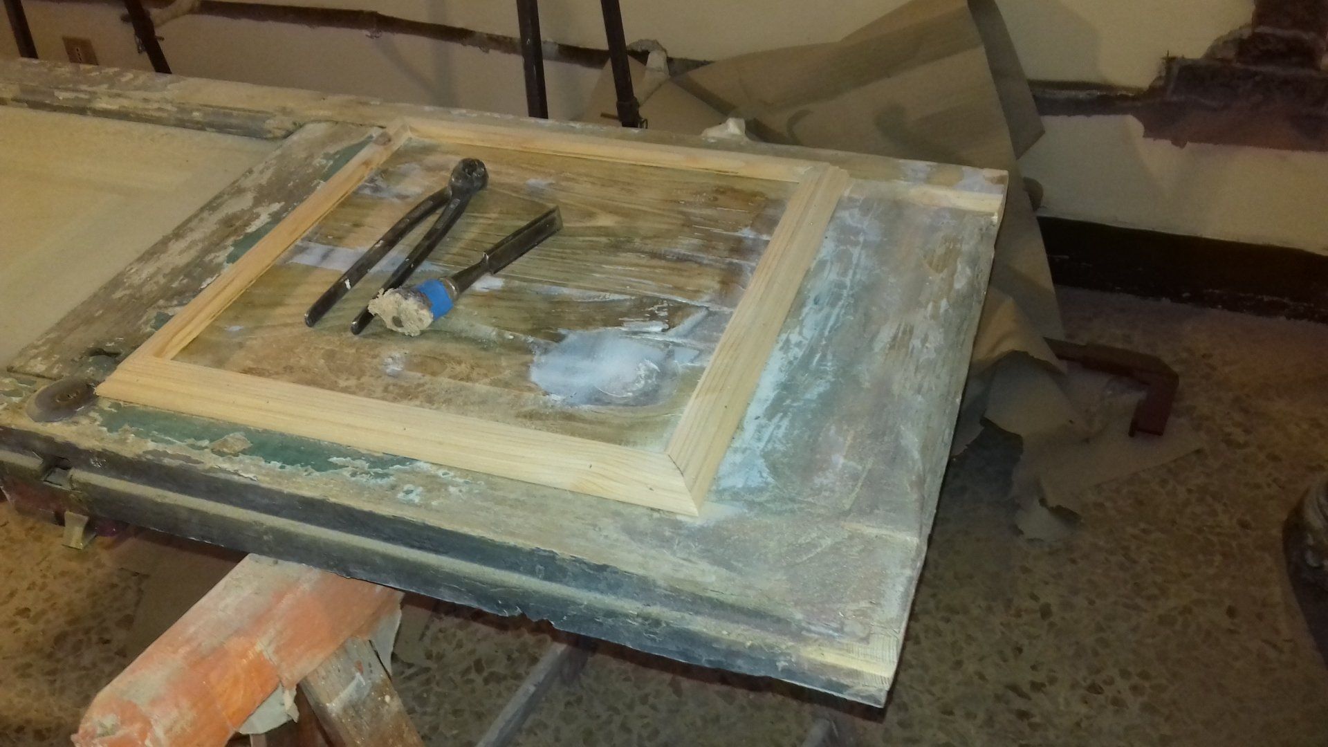 Gli interventi di ripristino comprendono la sverniciatura, la carteggiatura, l'inserimento delle squadrette e la riverniciatura.